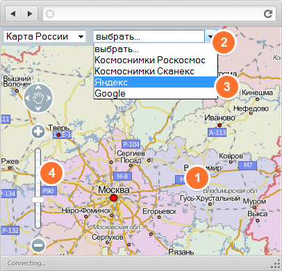 Смена базовых слоев, элемент управления картой
